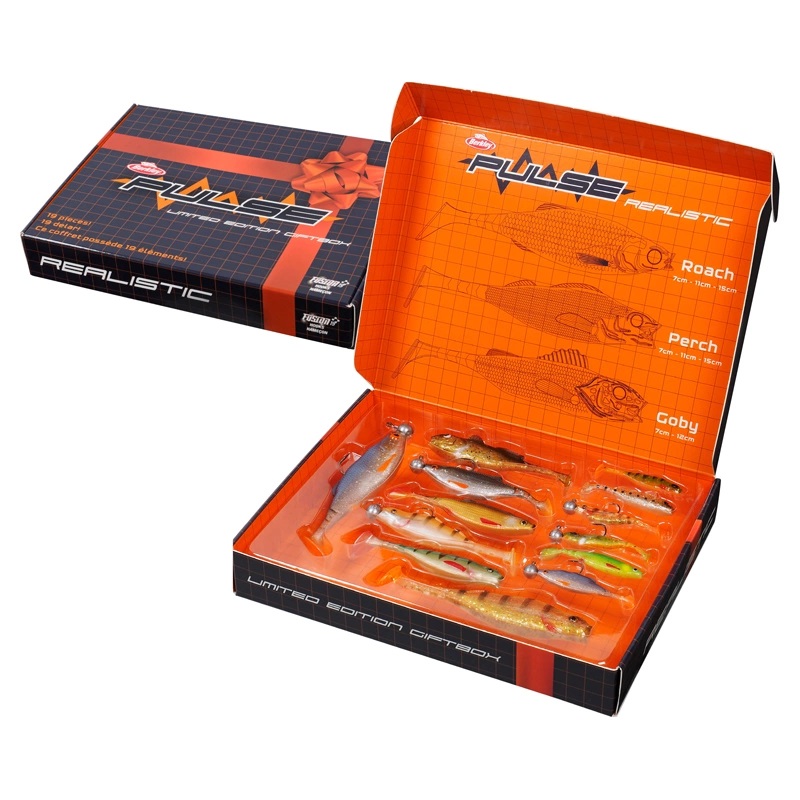 Berkley Pulse Realistic Limited Edition Giftbox – Denna presentförpackning innehåller beten som är perfekta för gädd-, gös-, och abborrefiske. Pulse Realistic Roach har en ettrig gång som irriterar aktiva predatorer. Pulse Realistic Perch kommer med en rullande gång och Pulse Realistic Goby har en lugnare paddelrörelse.