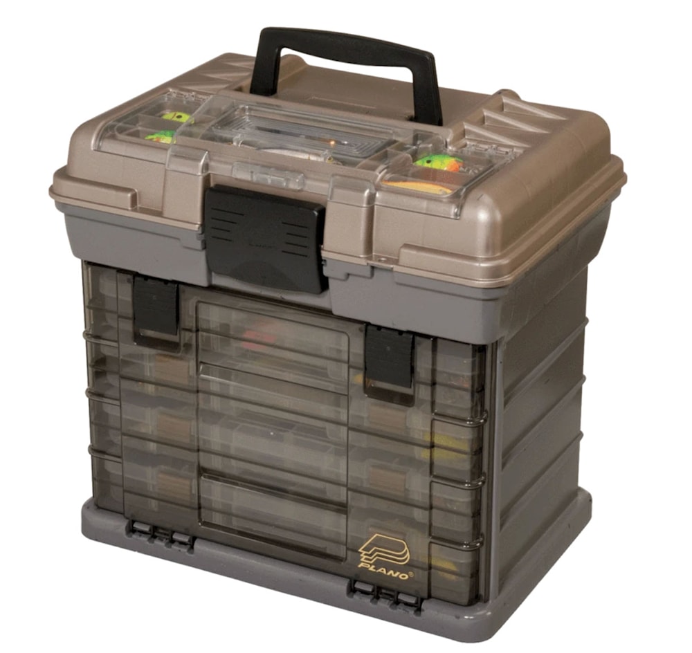 Plano Guide Series Stowaway Rack System 1374- Plano Guide Series Stowaway Rack System 3700-fiskelådan är högklassig, praktisk och rymlig. Lådan innehåller fyra StowAway-betesaskar i storleken 3700! På locket finns plats för exempelvis wobbler och under locket för små tillbehör.